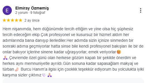 "Her hazırlığımızda kişiye özel hizmet veriyoruz. Randevu saatinizde sadece sizin hazırlığınız yapılmaktadır."